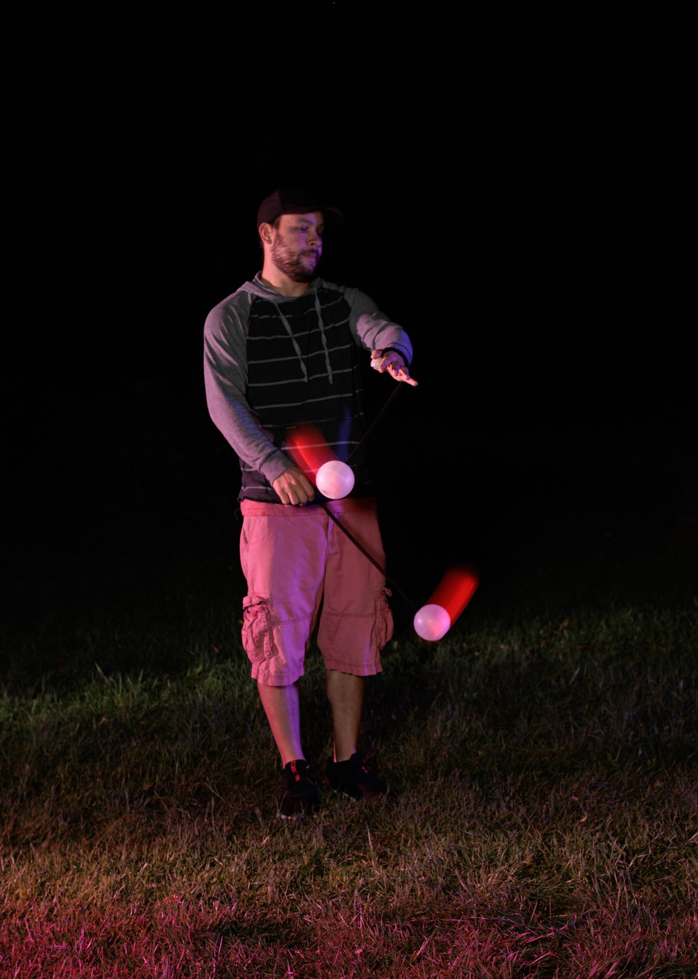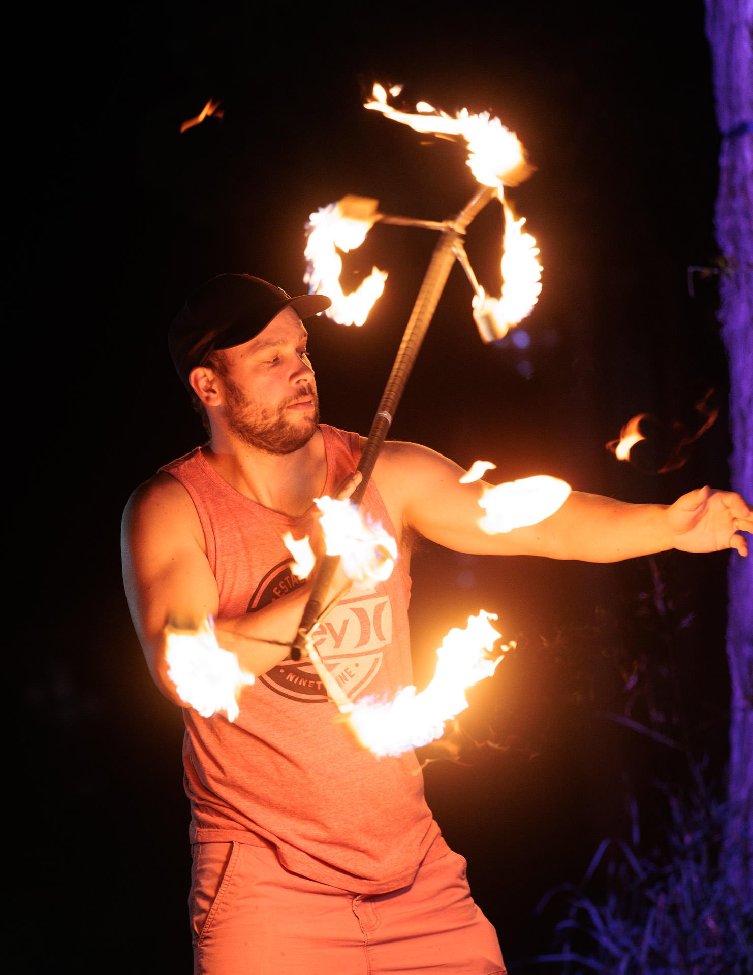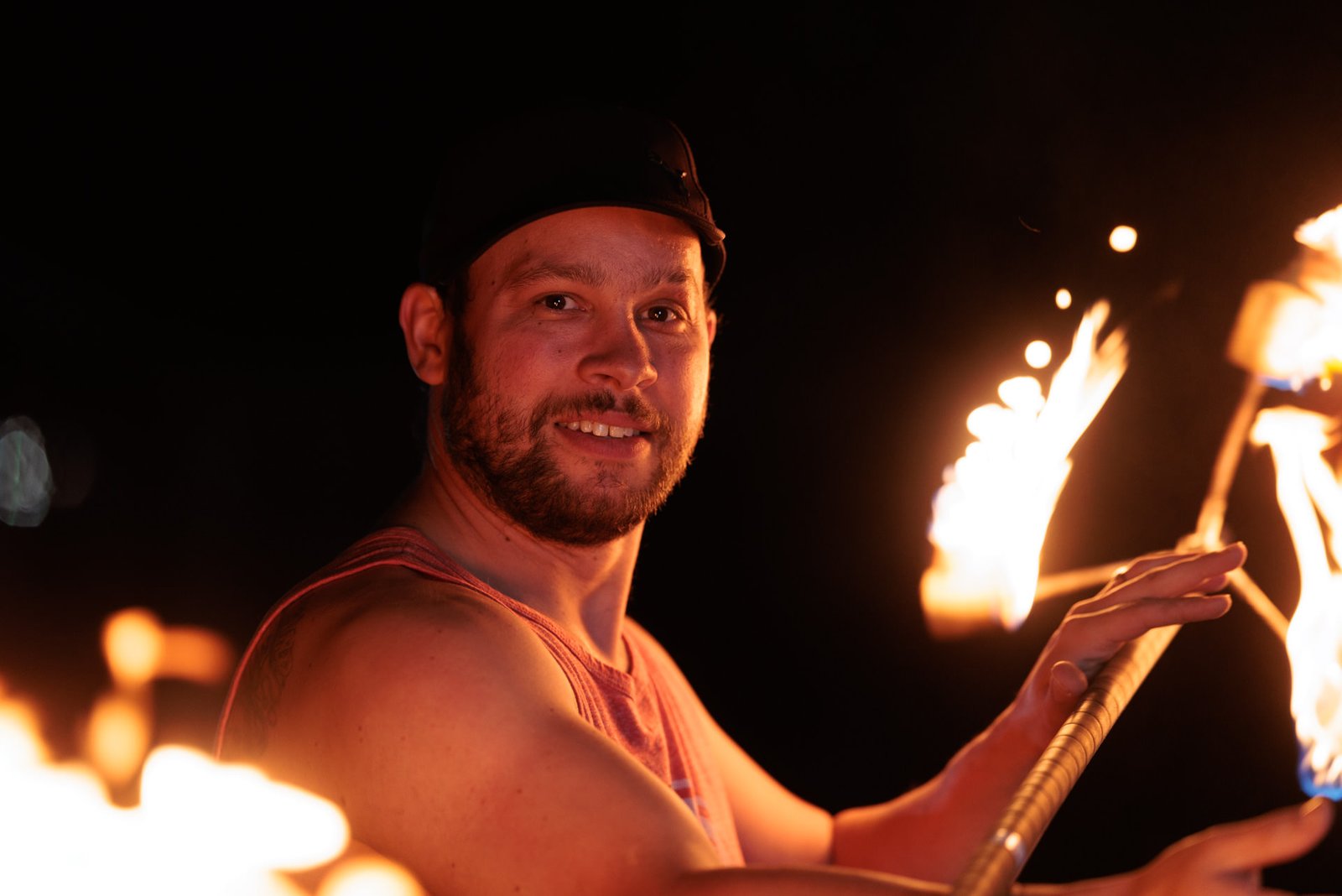 Photography is all about light – the literal meaning of photography is “drawing with light”. So one might think that taking portraits at night is a really bad idea. Yes, on one level low light makes photography very difficult. But the absence of light also gives us the ability to manipulate light in a way that you cannot do on a sunny day. Here are some fun examples of how to use light at night – I hope you enjoy our night portraits with fire and flow!
