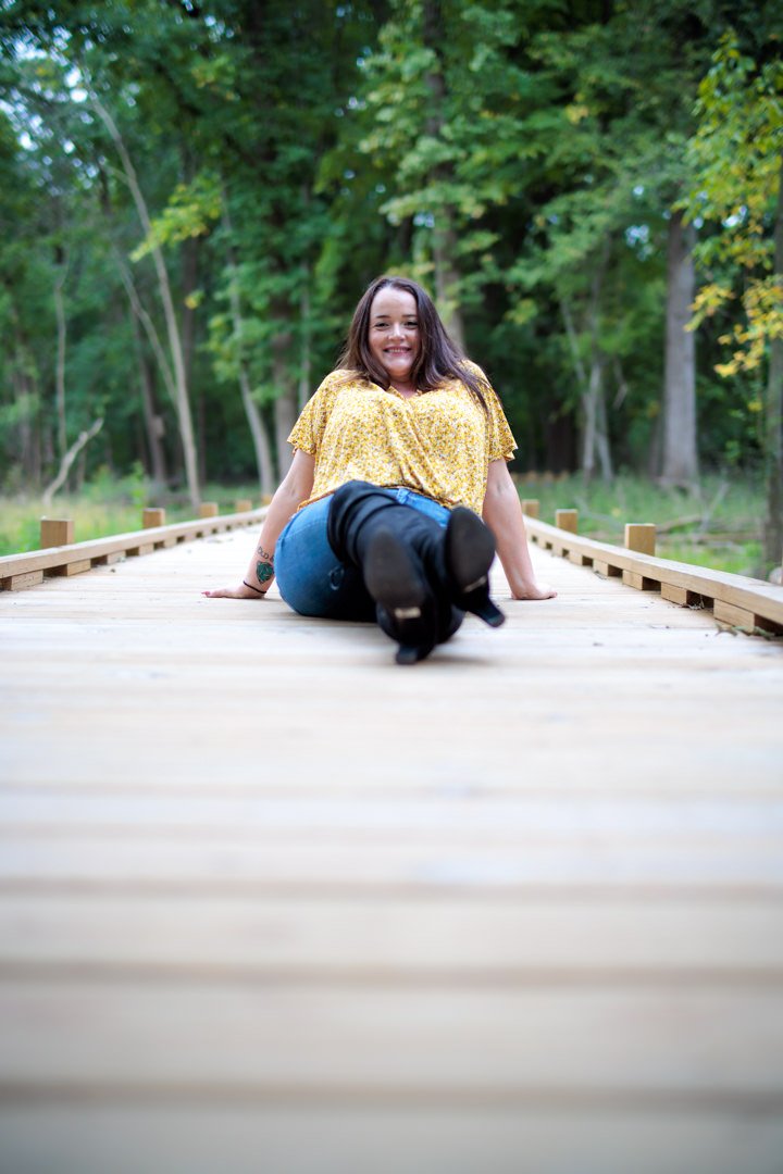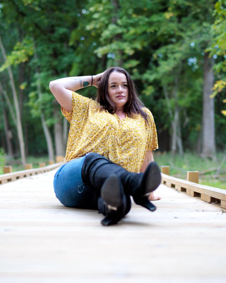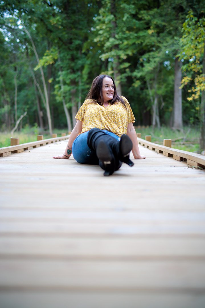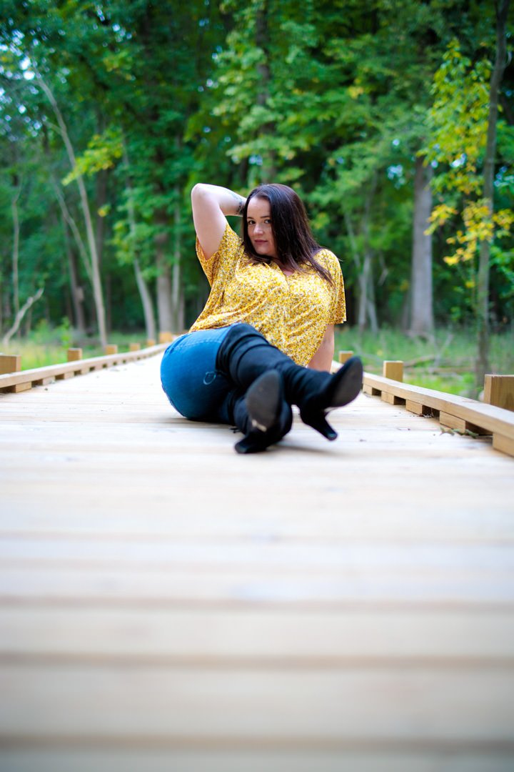 To find out, we met Nataly on the shores of the Fox River for some sunset portraits. Our first set was taken on a boardwalk – with a little deer in the background. This set was all taken at f/1.2 which is the widest aperture for this lens (and any 40mm lens that we know of).