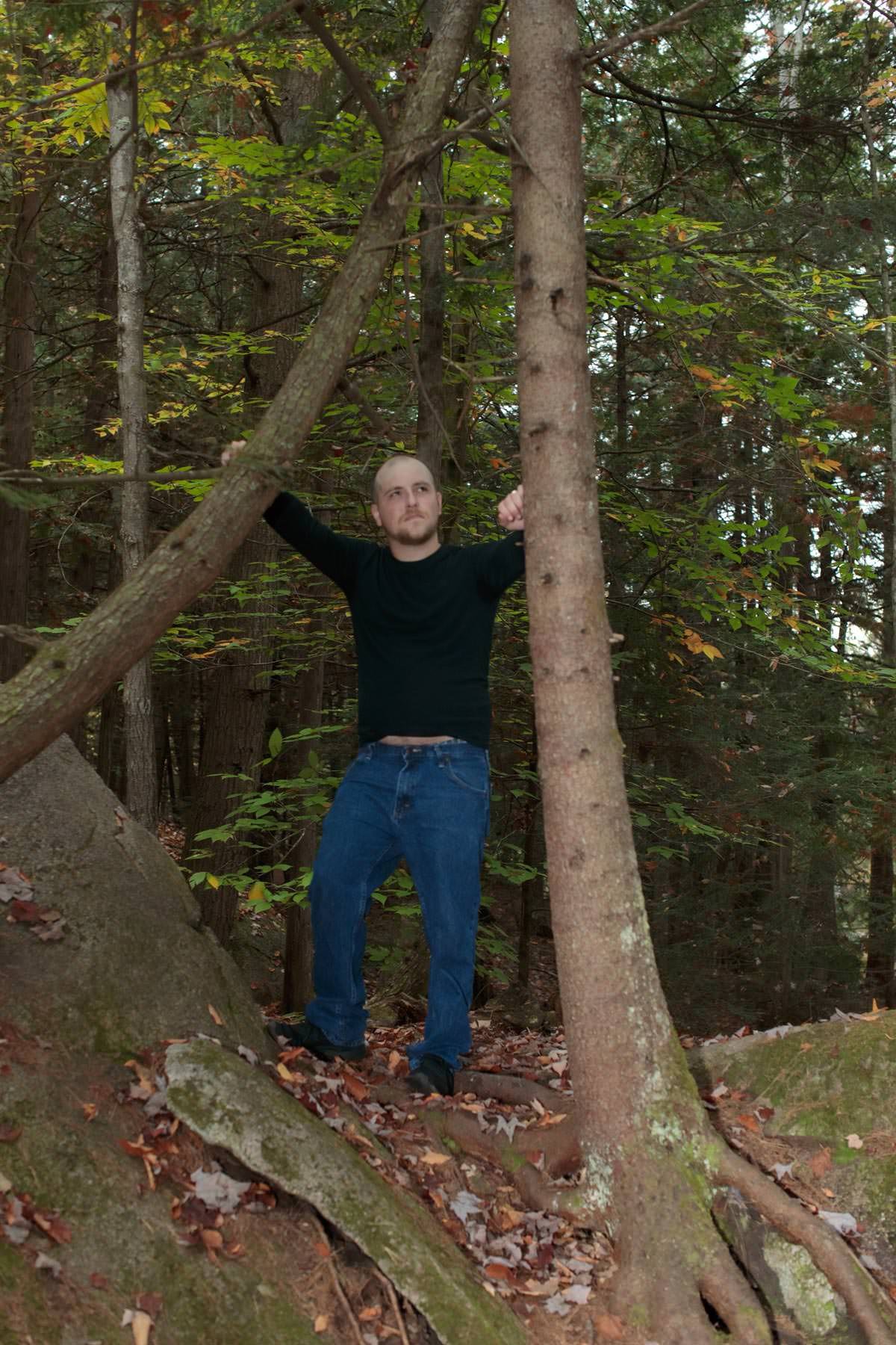 The plan was to capture some images with the beautiful Fall colors. We chose the late afternoon for the golden light and to let us do some fun lighting around the rocks. Rain all day at my home but the weather claimed it was clear at the location. As I drove through the downpour I started to lose faith a bit. But then 20 miles away the rain stopped and blue skies appeared! We were in business!