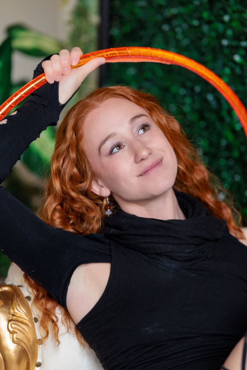 More about Madeline – she discovered Hoop dance nine years ago which unlocked the vast world of flow arts, transforming what started as a hobby into a dream career by founding the Cloud Nine Fire Show in May of 2023. Through the grace of silk fans, the glow of LED props, the power of Fire, and the endless possibilities of flow, Madeline aims to inspire others to find healing in motion, tap into the flow state, and to always reach for what makes them feel truly alive.